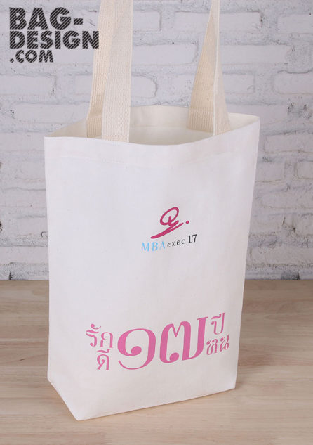 กระเป๋าผ้า เย็บแบบ Pattern 14 เนื้อผ้าดิบ เย็บหูสายสปัน พิมพ์สกรีน 1 สี 1 ด้าน